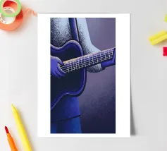 Catturate la bellezza della musica in ogni pennellata! Questo disegno raffigura una persona che suona la chitarra in modo profondo, ricco di dettagli e di espressione.