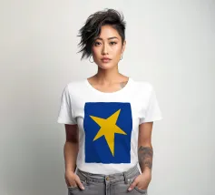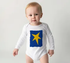 Un'audace stella gialla brilla su uno sfondo blu intenso in questo sorprendente design minimalista. Perfetta per le gallerie da parete e per l'arredamento eclettico della casa, questa opera d'arte aggiunge un tocco giocoso e moderno con un pizzico di fascino retrò.