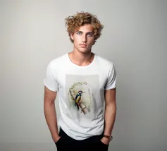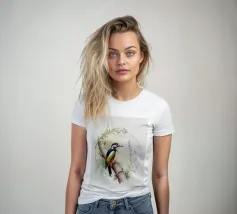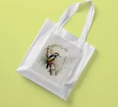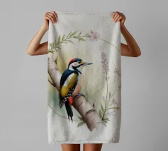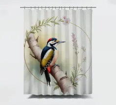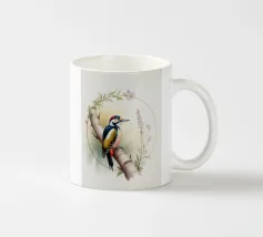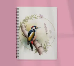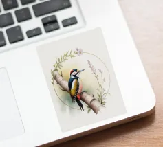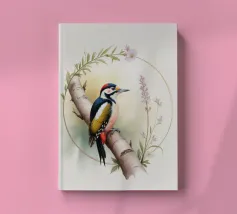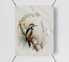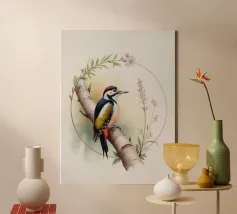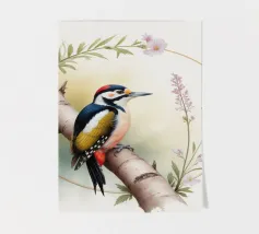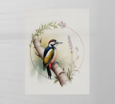 Tapp, il piccolo picchio, siede in un cerchio su un sottile sfondo beige. In un delicato stile acquerello, appare in vista laterale con dettagli raffinati e colori tenui: un motivo allegro e naturale per le decorazioni della camera dei bambini.