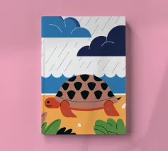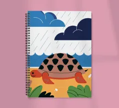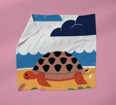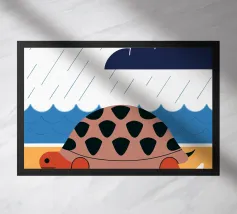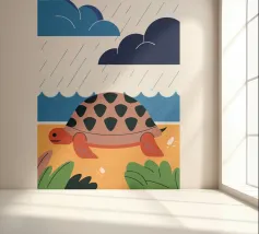 Godetevi una tranquilla illustrazione vettoriale con una tartaruga che cammina sulla spiaggia.