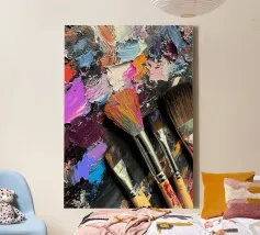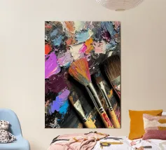 Una festa per tutti coloro che vivono e amano l'arte: Questo motivo vibrante mostra una tavolozza di colori dinamici con diversi pennelli ben utilizzati, incastonati in strati di pittura audaci e talvolta pastosi. La struttura delle pennellate appare quasi tridimensionale ed esprime autenticamente il caos creativo del processo artistico. Questo dipinto si rivolge alle anime degli artisti, alle menti creative e agli spiriti liberi - un simbolo di ispirazione, espressività e libertà creativa. Che sia in studio, in ufficio o in salotto, motiva a darsi da fare e a liberare la propria creatività.