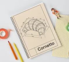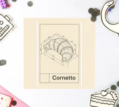 Questo poster combina in modo affascinante lo stile tecnico del design con la gioia di vivere italiana. Il disegno tecnico, apparentemente di alta precisione, mostra un croissant! Una dichiarazione di design ironica per chi ama l'estetica con senso dell'umorismo. Perfetto come decorazione elegante per la cucina, l'angolo bar o l'ufficio. Stampato su uno sfondo color crema con linee pulite in nero - minimalista, retrò e ammiccante. Il regalo perfetto per gli amanti del design e della colazione.