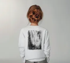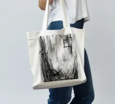 Dalla serie Explorations in Charcoal (Esplorazioni a carboncino), Frame utilizza segni pesanti con molto movimento ed energia su strati in scala di grigio e segni di firma.