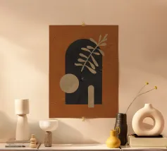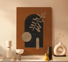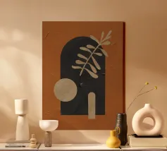 Questo design combina calde tonalità della terra, forme geometriche astratte e una superficie strutturata per creare una composizione elegante. L'armoniosa tavolozza di colori, composta da toni marroni e beige profondi e da elementi neri a contrasto, crea un ambiente elegante e moderno. Perfetto per murales, cuscini, tazze o cover per cellulari, questo motivo si adatta perfettamente agli stili di interni moderni e minimalisti. Ideale per gli amanti dell'arte che desiderano creare accenti contemporanei ed espressivi.
