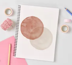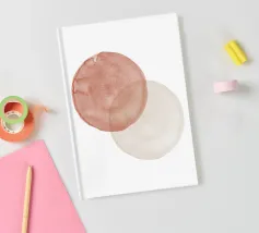 Due cerchi ad acquerello, morbidi e organici: terracotta a sinistra, beige a destra - come Marte e Giove in una tranquilla costellazione. La leggera sovrapposizione crea profondità ed equilibrio, la texture rimane naturale e non agitata.