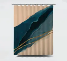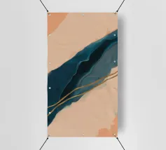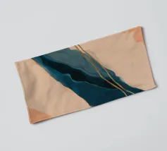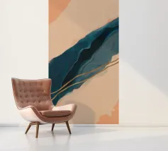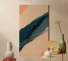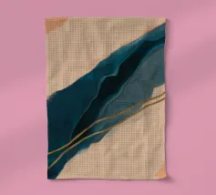 Piani di terracotta e di marina si piegano intorno a fili d'oro in una morbida tensione.
