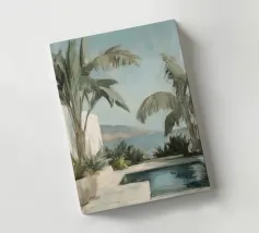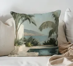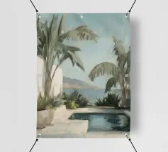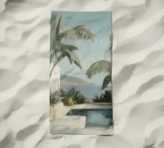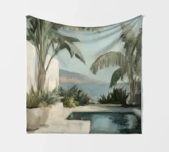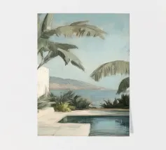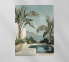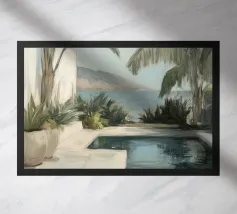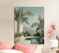 Godetevi l'atmosfera mediterranea con accenti color pastello ed elementi botanici sulla terrazza soleggiata della piscina sulla spiaggia, circondata da foglie di palma e dal dolce suono del mare. Un luogo perfetto per il relax e la meditazione!