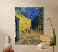 Portate il fascino senza tempo e il colore vibrante nel vostro spazio con Café Terrace at Night (1888) di Vincent van Gogh. Questo amato capolavoro cattura un caffè luminoso sotto un cielo stellato ad Arles, in Francia - pieno di calore, vita e l'atmosfera sognante che definisce lo stile iconico di Van Gogh. Conosciuto come un precursore de La notte stellata, questa riproduzione ad alta risoluzione celebra il contrasto tra la luce dorata della lampada e il blu profondo della notte, rendendolo un punto focale straordinario per qualsiasi casa, studio o spazio a tema caffè.