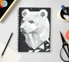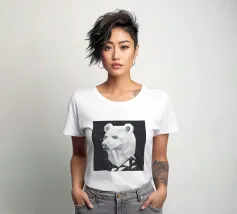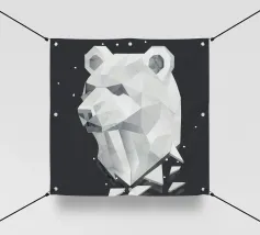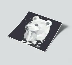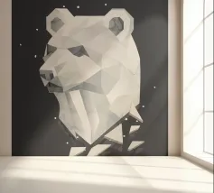 Un'imponente testa di orso in stile geometrico con una raffinata texture in marmo. Questo design unico simboleggia forza, calma ed eleganza moderna - perfetto per gli appassionati di arte e natura.Una testa d'orso imponente che si distingue per le forme geometriche e la sofisticata texture in marmo.