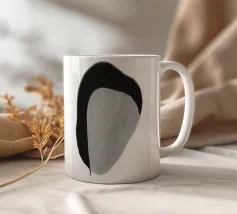 Una forma astratta minimalista in nero e grigio riempie la tela, suggerendo un profilo con una curva semplice e liscia e un contrasto. La delicata pennellata crea un intrigante equilibrio tra elementi chiari e scuri.