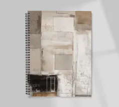 Questo disegno astratto combina elementi industriali con colori terrosi e forme minimaliste. Le texture stratificate di carta e materiali da costruzione, combinate con pennellate, creano un'affascinante profondità e riflettono lo stile boho del design contemporaneo.