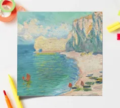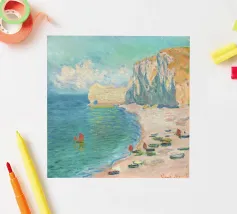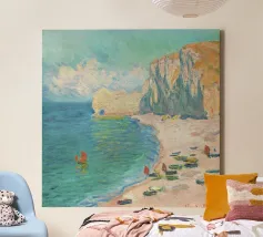 Questo affascinante paesaggio marino di Claude Monet raffigura le drammatiche scogliere di Étretat in Normandia, nello stile impressionista tipico di Monet, con pennellate sciolte ed espressive che catturano i giochi di luce sulle scogliere, sulla spiaggia e sul mare agitato Claude Monet, La spiaggia e la Falaise d'Amont, paesaggio marino Monet, arte costiera impressionista, quadro di scogliere della Normandia, paesaggio di Étretat, arte costiera francese, onde dell'oceano Monet, opera d'arte di scogliere drammatiche, impressionismo del XIX secolo, stampa di paesaggi di spiaggia, quadro marino di Monet, arte del cielo e del mare, decorazione murale costiera, famosi paesaggi di Monet, pittura a luce naturale, paesaggio di Monet.