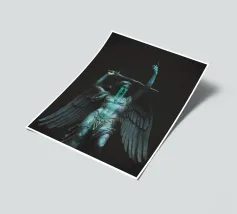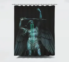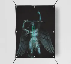 il torto sarà vendicato, la ferita sarà curata, tutto sarà ripristinato. ~ statua di un angelo con grandi ali in lacrime che impugna una spada. elementi scuri surreali in pietra di marmo
