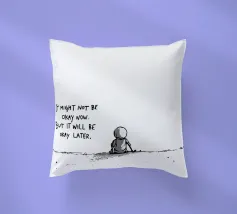 Questa illustrazione minimalista raffigura una piccola figura solitaria seduta a terra, di spalle all'osservatore, di fronte a una distesa di spazio vuoto. Le linee semplici trasmettono un senso di introspezione o forse di sconforto. A sinistra, un testo confortante disegnato a mano recita: "POTREBBE NON ANDARE BENE ORA. MA ANDRÀ BENE PIÙ TARDI". L'opera offre un potente messaggio di speranza e rassicurazione, riconoscendo le difficoltà attuali e sottolineando al contempo la natura transitoria delle difficoltà e l'eventuale arrivo di tempi migliori. Serve a ricordare la resilienza e l'importanza di mantenere l'ottimismo.