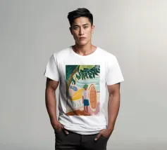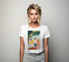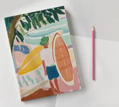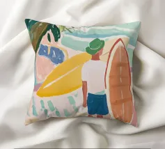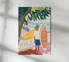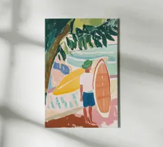 "The Surfer's Pause I" (La pausa del surfista) cattura un momento di tranquillità: un surfista solitario si trova sulla riva e guarda l'oceano sereno. Con pennellate semplici e decise e colori vivaci, l'opera d'arte evoca un senso di calma e attesa. La vegetazione lussureggiante, la spiaggia sabbiosa e le onde che ondeggiano dolcemente creano un'atmosfera rilassata e tropicale, perfetta per chi sogna una fuga sulla costa. Questo pezzo porta un rinfrescante senso di calma e riflessione, ideale per qualsiasi spazio che cerchi un'atmosfera rilassata e balneare. Progettato da BALIKA HOMES.