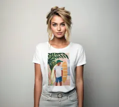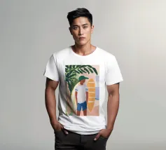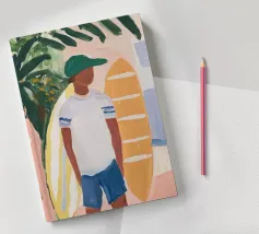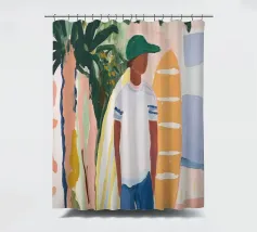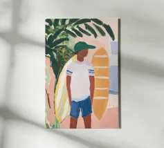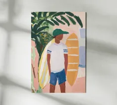 "The Surfer's Pause II" cattura un momento di tranquillità: un surfista solitario si trova sulla riva e guarda l'oceano sereno. Con pennellate semplici e decise e colori vivaci, l'opera d'arte evoca un senso di calma e attesa. La vegetazione lussureggiante, la spiaggia sabbiosa e le onde che ondeggiano dolcemente creano un'atmosfera rilassata e tropicale, perfetta per chi sogna una fuga sulla costa. Questo pezzo porta un rinfrescante senso di calma e riflessione, ideale per qualsiasi spazio che cerchi un'atmosfera rilassata e balneare. Progettato da BALIKA HOMES.