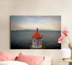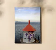 Un faro solitario veglia, il suo scopo tradizionale si sovrappone a storie moderne. Questa fotografia lunatica cattura lo struggente contrasto tra un paesaggio marino sereno e senza tempo e un faro reclamato dai fantasmi della città. Strati di graffiti segnano la sua superficie, una testimonianza vibrante e caotica contro il mare calmo e il cielo morbido del tramonto. Un'opera stimolante e splendidamente malinconica, che esplora l'intersezione tra natura, struttura ed espressione umana. Una dichiarazione unica e tagliente per uno spazio contemporaneo.