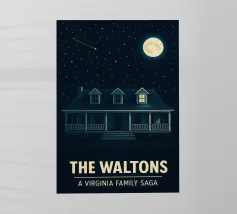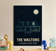 Stampa dei Waltons, Poster cinematografico alternativo, Buonanotte a tutti, John-Boy, Fattoria dei Waltons, Bianco e nero, Arte murale digitale, Regalo per i fan del cinema