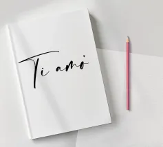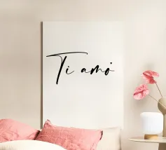 Ti amo, ti voglio bene in italiano. Espressione d'amore e di San Valentino. Tipografia in nero e bianco (trasparente). È possibile cambiare il colore dello sfondo. Poster tipografico minimalista.
