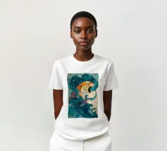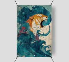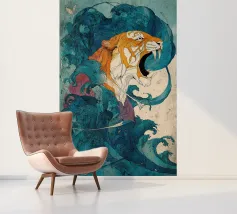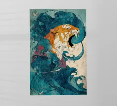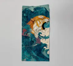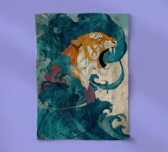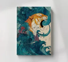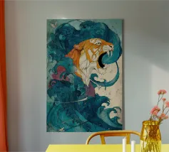 Una fusione dinamica tra la forza di una tigre ruggente e le onde dell'oceano che si infrangono. Quest'opera d'arte è ispirata allo spirito dell'arte giapponese e rappresenta il coraggio, la resistenza e l'energia inarrestabile. Con pennellate dettagliate e contrasti vivaci, è un pezzo forte per gli interni moderni.