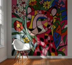 Questo dipinto di grande impatto presenta una tigre in stile cubista con forme geometriche audaci e colori vivaci. Il volto della tigre è frammentato in forme astratte che ricordano lo stile di Picasso, con angoli acuti e piani sovrapposti. Lo sfondo è un mix vibrante di motivi floreali in tonalità vivaci, che creano un'atmosfera dinamica ed espressiva. La combinazione di cubismo ed elementi floreali conferisce all'opera un equilibrio unico tra energia selvaggia e bellezza delicata, rendendola un'accattivante dichiarazione d'amore e creatività.