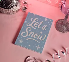 Una rivisitazione nitida e moderna dell'amata frase "Let it Snow". Le scritte bianche e pulite e i delicati fiocchi di neve fluttuano su un gelido sfondo blu, creando un'opera d'arte invernale semplice ma elegante, perfetta per spazi tranquilli e minimalisti.