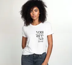 Diffondete amore e calore con la collezione "You Are So Loved Typography"! Questi disegni tipografici morbidi e affettuosi sono disponibili in opere d'arte da parete che impreziosiscono qualsiasi ambiente, in accoglienti t-shirt da indossare tutti i giorni e in calde felpe con cappuccio per un maggiore comfort. Un dolce ricordo di quanto siete preziosi.