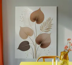 Questa accattivante opera d'arte celebra la bellezza dei toni terrosi della natura attraverso un'accattivante composizione botanica astratta. Delicate foglie nei toni del marrone e del beige danzano sulla tela, creando un'esperienza visiva ipnotica e serena. I dettagli intricati e le forme organiche evocano un senso di tranquillità e di connessione con il mondo naturale. Questo pezzo è un'aggiunta perfetta a qualsiasi spazio che cerchi un tocco di eleganza e bellezza naturale.