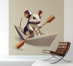 Un coraggioso topo che rema in una nave di carta - design fantasioso con un moderno aspetto geometrico. Ideale per bambini, sognatori ed esploratori.