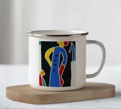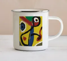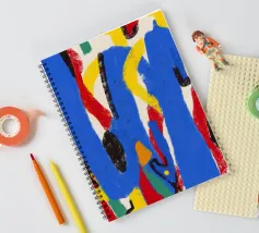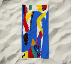 Tratti audaci e vibranti di blu, rosso, giallo e nero creano una composizione dinamica ed energica su uno sfondo chiaro. La disposizione astratta di colori e forme dà un senso di movimento e spontaneità.