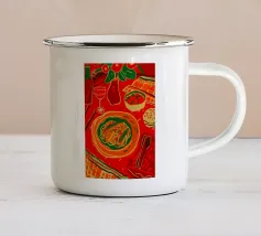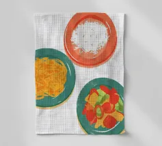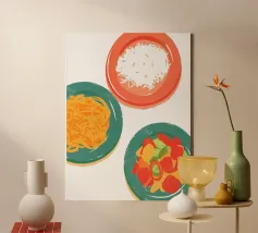 Questo disegno rappresenta l'equilibrio e la diversità del cibo. I tre piatti simboleggiano diversi tipi di cibo, diversi sapori e consistenze, ma si completano a vicenda.