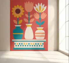 Per gli amanti dei fiori e del design affascinante della casa, l'illustrazione "Tre vasi di fiori" è la scelta perfetta! Questo disegno presenta tre vasi di fiori con diversi tipi di fiori bellissimi, perfetti per mostrare il vostro amore per la bellezza naturale e l'estetica della casa.