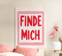Nei toni accesi del rosso e del rosa, questa stampa d'arte "Find me" esprime a grandi lettere il desiderio di amore e di scoperta di sé. La tipografia romantica incornicia la ricerca di un partner e lo stare insieme. Ideale per l'estate, il disegno cattura in modo giocoso l'essenza delle relazioni.