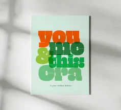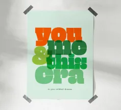 Audace, vibrante e piena di energia, questa opera d'arte tipografica giocosa ed espressiva celebra una nuova era con l'arancione dopamina e le lussureggianti sfumature di verde contrapposte al tenue color menta pastello. Un lettering retrò e giocoso incontra un tocco di ispirazione, firmato con "in our wildest dreams" (nei nostri sogni più selvaggi), un promemoria per credere in ciò che è possibile.