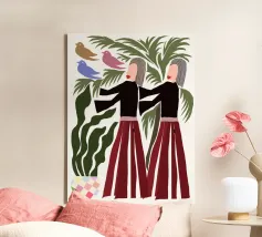 figura astratta, opera d'arte di donna gemella, stampa botanica moderna, arte murale contemporanea, design folk minimalista, arredamento boho chic, illustrazione di pianta tropicale, stampa di uccello colorato, arte astratta della giungla, poster di donna alla moda, arte della gonna rossa, arte del ritratto senza volto, decorazione ispirata alla natura, arte murale moderna per la casa, stampa di foglie tropicali, poster in stile scandinavo, arte di personaggio unico, stampa murale vivace, arte astratta di persone, arredamento audace contemporaneo