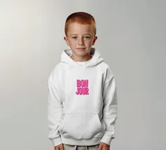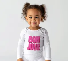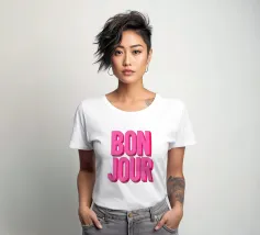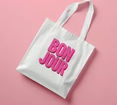 Un saluto amichevole con effetto wow: "BONJOUR" in tipografia 3D rosa sovradimensionata su uno sfondo bianco brillante. Questo audace poster porta il fascino francese e l'arte tipografica moderna in qualsiasi ambiente: ideale per il corridoio, la cucina o come dichiarazione di design in ufficio. Elegante, chiassosa, affascinante: Parigi vi manda i suoi saluti.
