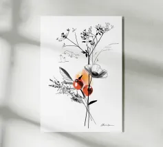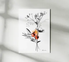 Quando in autunno sbocciano gli ultimi fiori, la rosa canina risplende e l'erba si affievolisce, gli uccelli si dirigono verso sud. Decorate la vostra stanza con questa illustrazione minimalista del nostro mondo naturale e del fascino moderno.