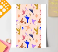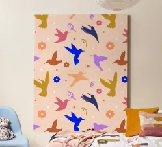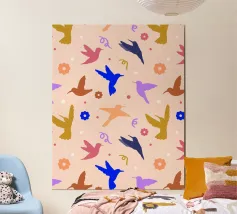 "Birds in the Air" presenta un vivace disegno di colibrì colorati che si librano su un morbido sfondo pastello. Con semplici accenti floreali, il disegno cattura la bellezza e la grazia della natura in volo. Perfetto per aggiungere un tocco di estro e fascino a qualsiasi spazio!