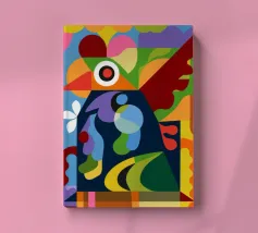 Colori vivaci e motivi intricati si uniscono per creare una composizione ipnotica e vibrante. Questo dipinto cattura la gioia e la complessità del design artistico.