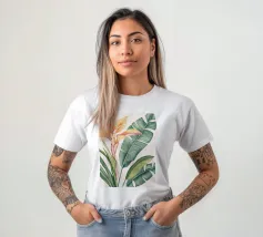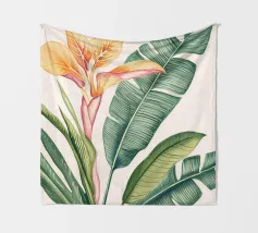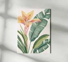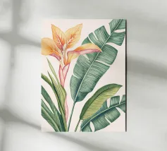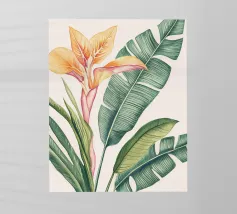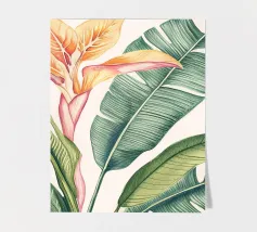 Immergetevi nella vibrante bellezza della natura tropicale con questa opera d'arte botanica boho che presenta l'iconico fiore Bird of Paradise e le rigogliose foglie di Monstera. Le delicate tonalità di verde, rosa e arancione si fondono armoniosamente, evocando una serena atmosfera tropicale. Perfetto per aggiungere un tocco di eleganza esotica a qualsiasi spazio, questo pezzo celebra la rigogliosa vitalità della natura ed è ideale per gli appassionati di botanica e di interni di ispirazione boho.