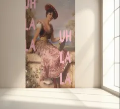 Aggiungete un tocco di fascino stravagante con "Uh La La", un'accattivante stampa pop art che unisce l'eleganza classica a un'espressione giocosa e moderna. Questa opera d'arte raffigura una bellissima figura storica, adornata con un abito e un cappello rosa acceso, che tiene in mano un tamburello, con uno sguardo invitante e pieno di vita. Il testo "UH LA LA", in grassetto e in rosa acceso, si sovrappone all'immagine, aggiungendo un sentimento spensierato ed espressivo. È un mix perfetto di bellezza senza tempo e divertimento contemporaneo, ideale per aggiungere personalità e stile a qualsiasi interno moderno. Realizzato ad un'eccezionale risoluzione di 7000x5000 pixel e 300