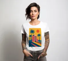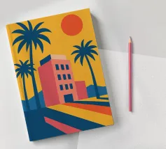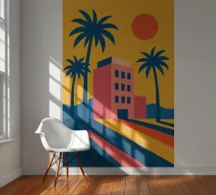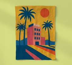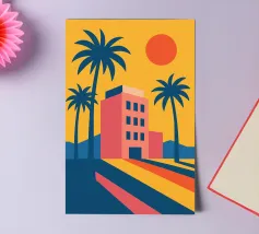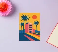 Immergetevi nella California dei vostri sogni, con i suoi colori saturi, le palme vintage e gli edifici iconici. Questo poster evoca il glamour solare di Los Angeles con una tavolozza calda e grafica. Ideale per aggiungere un tocco retro-pop a qualsiasi stanza.