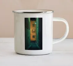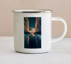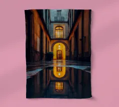 Questa fotografia cattura la magia di Barcellona di notte, dove i riflessi delle luci dorate illuminano un vicolo silenzioso dopo la pioggia. L'atmosfera calda e tranquilla è un invito a fuggire e a viaggiare nell'intimità di questa città ammaliante.