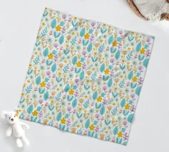 Un allegro motivo floreale pieno di foglie colorate e delicati fiori di campo. Gli elementi disegnati a mano creano un disegno fresco e giocoso ispirato alla natura. Perfetto per aggiungere un tocco di primavera e di allegria a qualsiasi spazio!