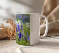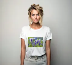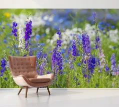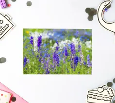 Immergetevi nella bellezza mozzafiato di un campo pieno di delphinium viola, uno straordinario spettacolo di eleganza e tranquillità della natura. Questa fotografia cattura le alte e graziose fioriture che ondeggiano dolcemente nella brezza, con le loro vibranti tonalità viola che creano una scena di pura serenità e fascino. I delphinium simboleggiano positività, dignità e protezione.