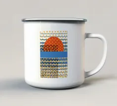 Questo poster astratto di optical art gioca con la percezione e gli intensi contrasti cromatici per creare una sensazione di movimento e tensione visiva. Evoca un paesaggio sintetico, uno scanner solare o un orizzonte filtrato da una matrice algoritmica.