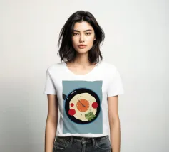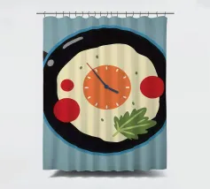 Un'illustrazione surreale e giocosa di una padella con due uova al sole che sembrano il quadrante di un orologio, su uno sfondo scuro.