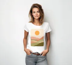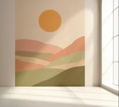 Quest'opera d'arte cattura la serena bellezza di colline ondulate immerse in toni caldi e terrosi, con un sole tenue che risplende sopra la testa. Lo stile minimalista e la palette di colori tenui creano un'atmosfera calma e accogliente, perfetta per portare un tocco di magia dell'ora d'oro in qualsiasi spazio.