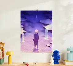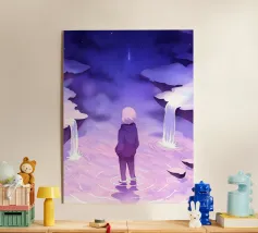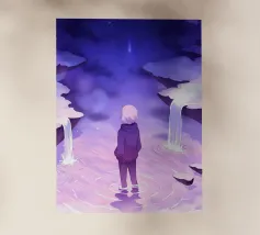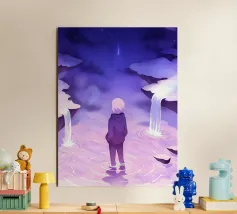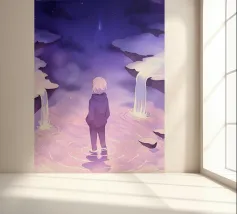 Un ragazzo in piedi in cascate da sogno Lofi Art