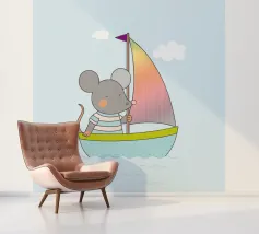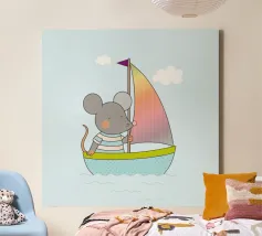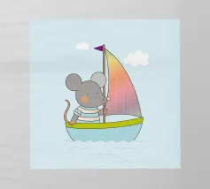 Un simpatico topo naviga rilassato sul mare. La vela dai colori pastello e il simpatico motivo rendono questo disegno ideale per i bambini e gli amanti del mare.Topo in barca a vela, illustrazione per bambini, simpatico motivo animale, topo in barca a vela, disegno carino, design marittimo, arte per la camera dei bambini, grafica di topo in barca, piccolo avventuriero, illustrazione di vela, motivo in colori pastello, topo divertente, stile fumetto nautico, figura animale carina, grafica marittima, animale in barca, arte per bambini carina, barca e onde, illustrazione di topo, mondo animale allegro, viaggio nell'oceano, motivo nautico, illustrazione estiva, fumetto di topo, mariti